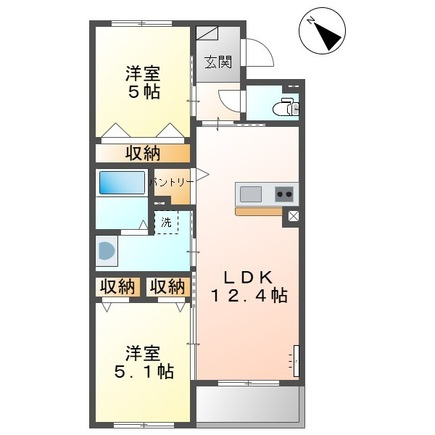 LDK 12.5帖/洋室 5.6帖/洋室 5.3帖 - 向き