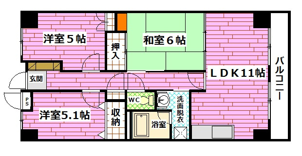 LDK 11.0帖/和室 6.0帖/洋室 5.0帖/洋室 5.1帖 - 向き